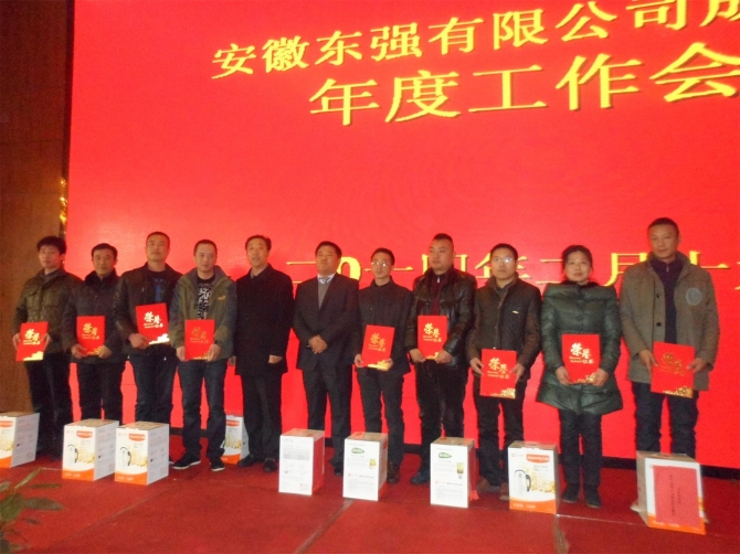 一元復(fù)始,萬象更新。為認真總結(jié)和回顧2013年度各項工作,并對2014年的生產(chǎn)經(jīng)營管理提出明確的目標(biāo)任務(wù)和計劃。表彰先進,提升士氣,充分凝聚企業(yè)團隊的智慧和力量,以良好的團隊精神、團隊能力和團隊業(yè)績,確保2014年各項目標(biāo)任務(wù)的圓滿完成和企業(yè)的長遠發(fā)展,2014年2月19日,公司在合肥同慶樓花園酒店召開了年度工作會議。出席會議的有公司領(lǐng)導(dǎo),安徽東強、西站、鯤翼商貿(mào)全體員工,蕪湖康特、蕪湖東強、六安宏順、六安鯤鵬、六安東升中層以上管理者、獲獎人員及五年以上員工。