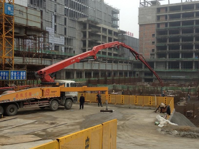 綠地中央廣場(chǎng)12000方大體積砼順利澆筑完畢