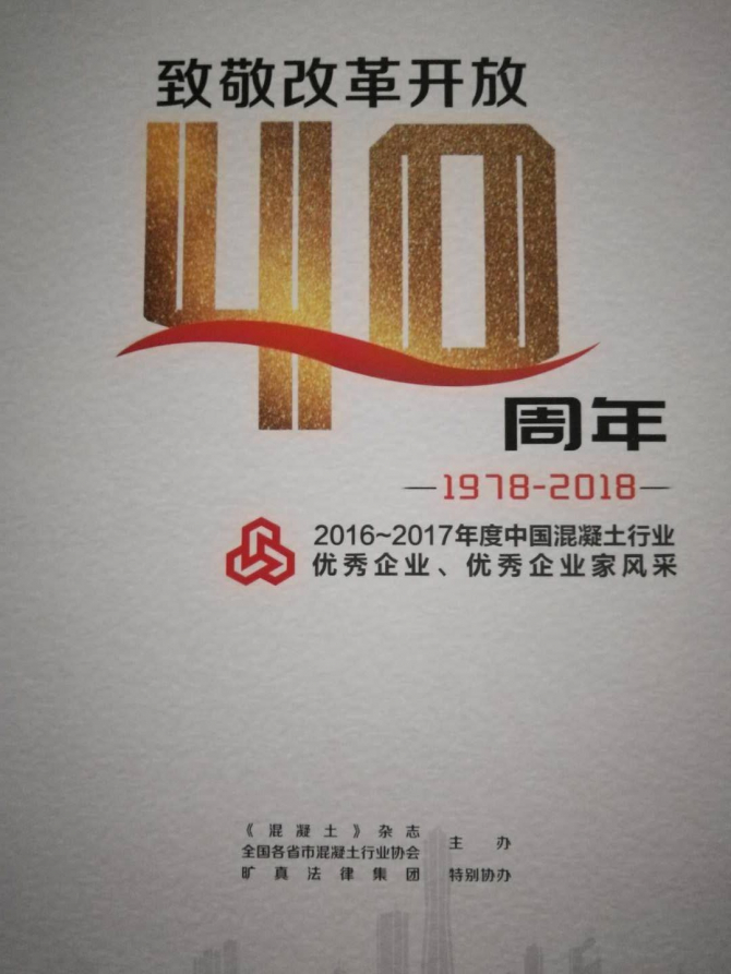 2018年10月21日至24日我公司領(lǐng)導(dǎo)赴浙江參與《2018年中國(guó)混凝土年會(huì)暨新時(shí)代混凝土行業(yè)綠色高性能發(fā)展論壇大會(huì)》,并在會(huì)上被評(píng)為2016——2017年度中國(guó)混凝土行業(yè)優(yōu)秀企業(yè)。公司積極參與行業(yè)大會(huì),把握混凝土行業(yè)新技術(shù)、新發(fā)展、新導(dǎo)向,與時(shí)俱進(jìn),不斷創(chuàng)新。