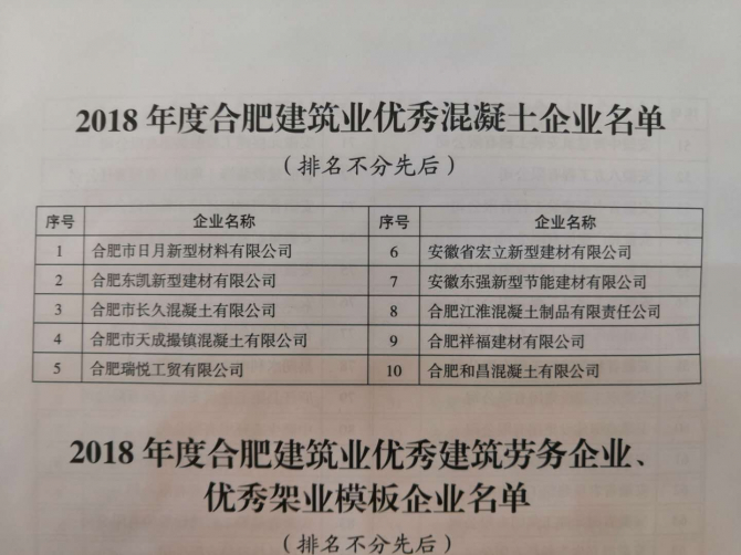 2019年6月20號合肥市建筑工程協(xié)會第六屆會員大會盛大召開,我公司參與會議,并被評為2018年度合肥建筑業(yè)優(yōu)秀混凝土企業(yè)。隨著公司近年來高速高質(zhì)量的發(fā)展,不斷的或者客戶及社會各界的好評和認可,這離不開公司董事長、劉總經(jīng)理的高瞻遠矚,以及管理團隊的不懈努力。